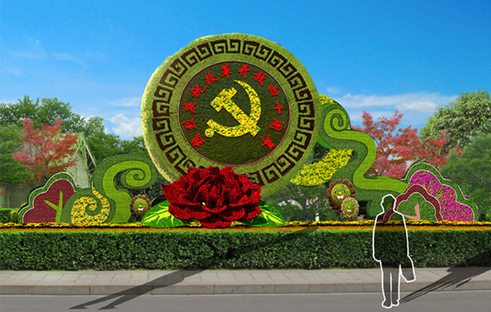 周年慶仿真綠雕立體花壇